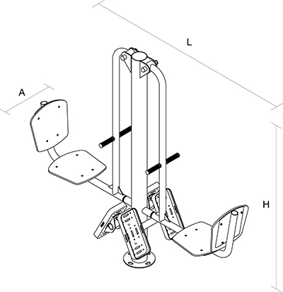 Tipo de Ejercicio: Fortalece músculos de piernas. Ejercicio anaeróbico. Medidas (mm): L: 2000 A: 510 H: 1800 Área de Seguridad: L 4160 – A 2420 Capacidad: 2 personas Peso: 64.5 KG