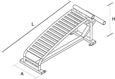 Tipo de Ejercicio: Entrenamiento para abdomen (superior, oblicuos, cintura y espalda). Medidas (mm): L: 1521, A: 500, H: 550 Área de Seguridad: L 3530, A 2500 Capacidad: 1 persona Peso: 30 KG