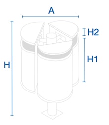 Referencia (mm): H 1170 H1 600 H2 150 A 617