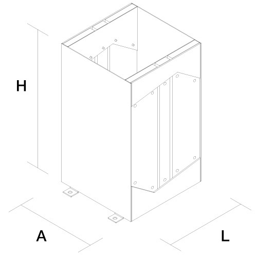 Anclaje: Atornillar, ahogar en cemento o movible. Referencia (mm): H 610 L 419 A 349