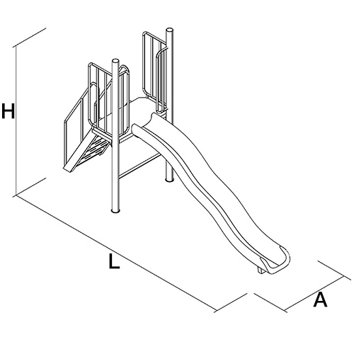 Incluye: Torre de acceso y resbaladilla de polietileno rotomoldeado de pared doble H 1.100 L2.478m (de doble pared para parques públicos. Materiales: Estructura de acero; Barandales de lamina perforada; Piso antiderrapante Acabado: en pintura poliéster electroestática en polvo horneada. Tratamiento anticorrosivo a base de tinas de fosfatos y sellos orgánicos