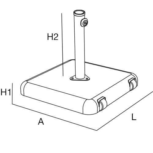 Material: De cemento con carcasa y ruedas de plástico. Tubo de acero con pintura electrostática polyester.