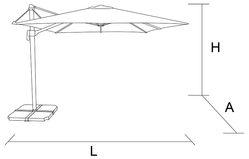 Medida de sombrilla: 3.0 x 3.0 mts.